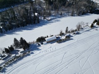 Adjacente à la magnifique Shipshaw River, la propriété bénéficie d'une vue imprenable sur l'eau et d'un accès à un plan d'eau sécuritaire pour toute la famille. Vous pourrez vous y baigner, faire du kayak ou simplement vous détendre en admirant le paysage naturel exceptionnel.